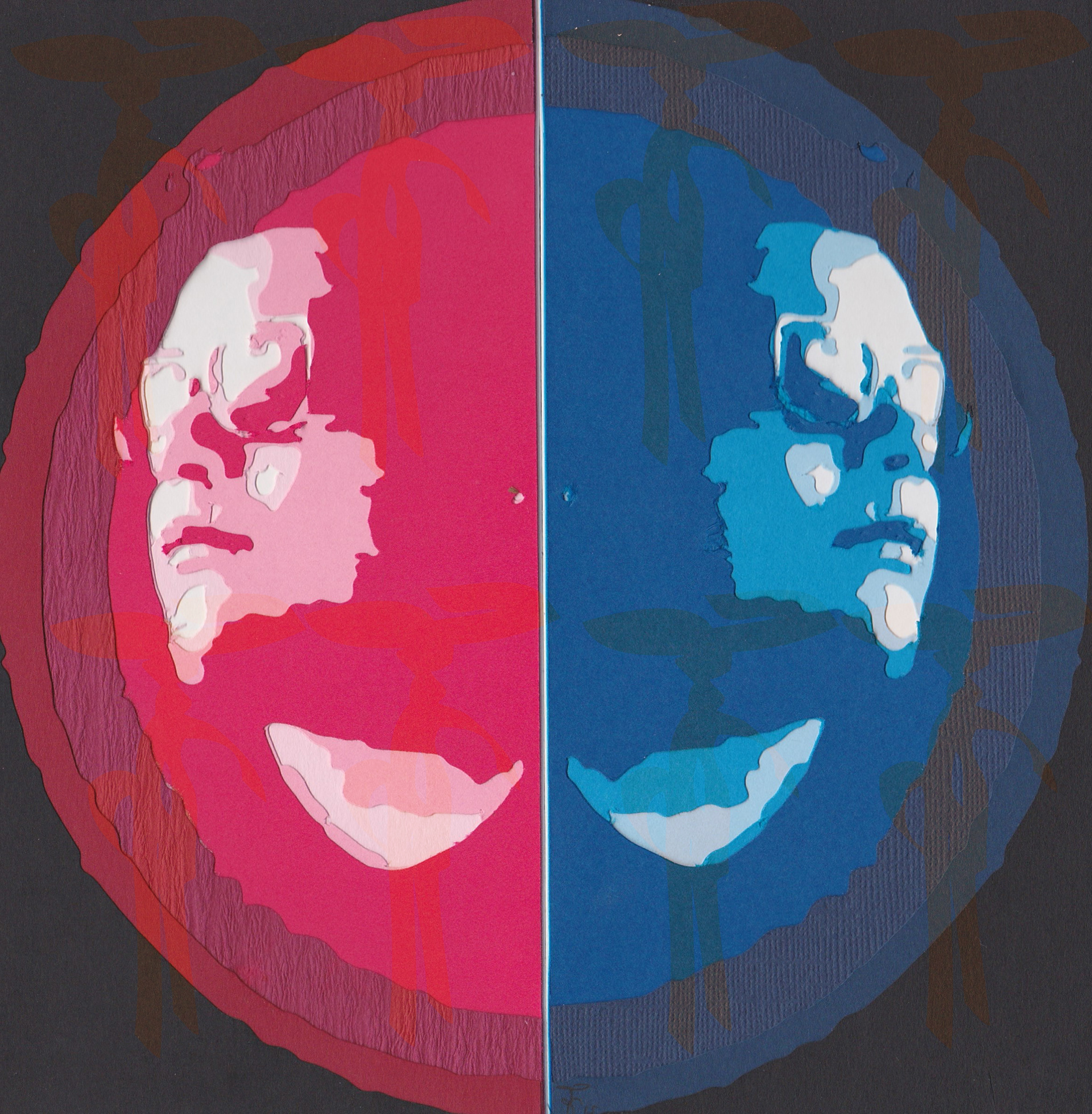 Layered Cut-Paper. This work was inspired by my teaching philosophy of encouraging students to see things from the perspective of others. 10"X10"