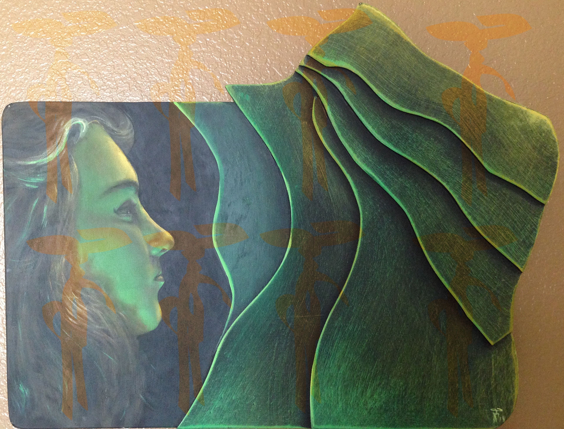 Layered Painted Wood. This is one of my figure paintings, where I focused on the facial features of the model. 15"X24"