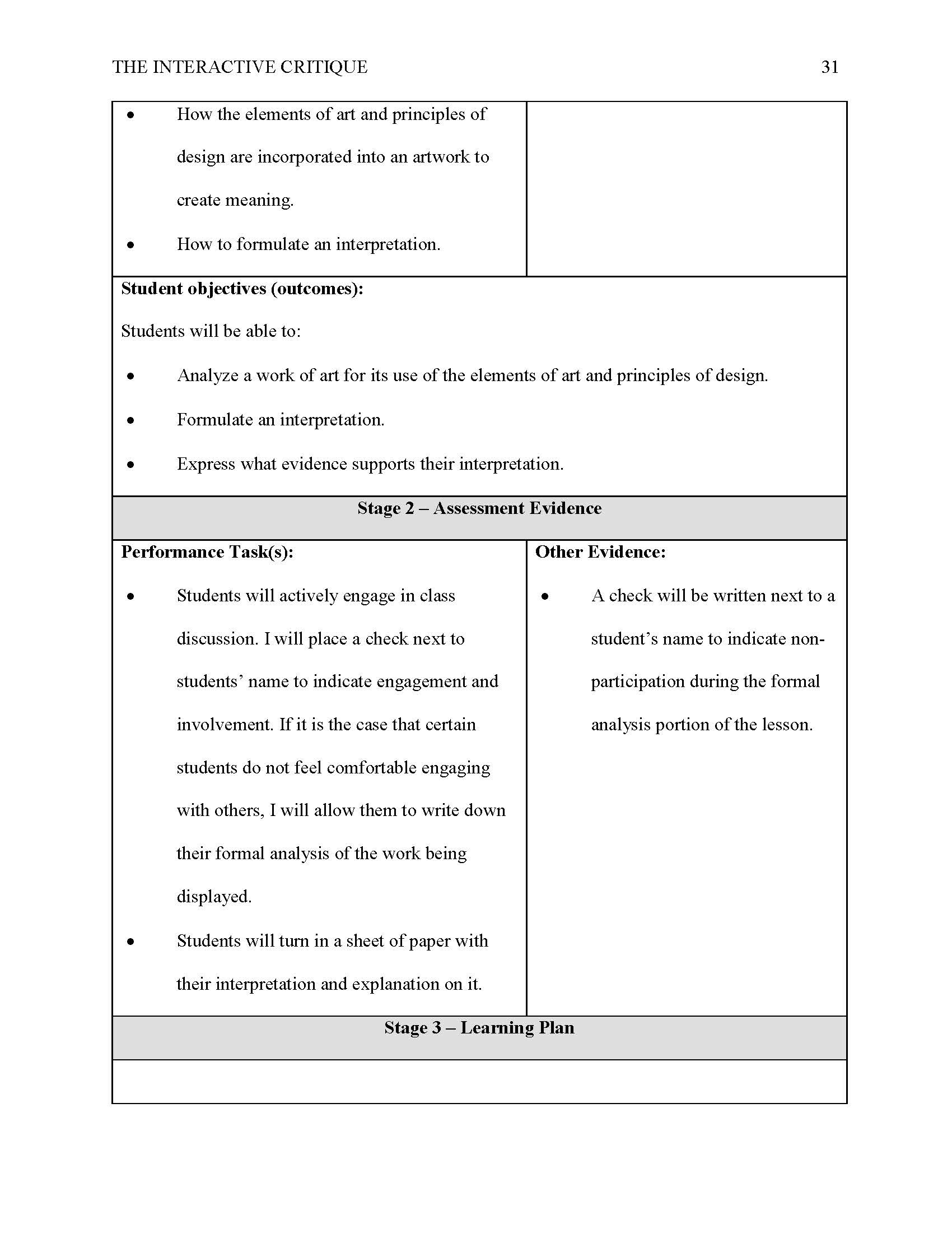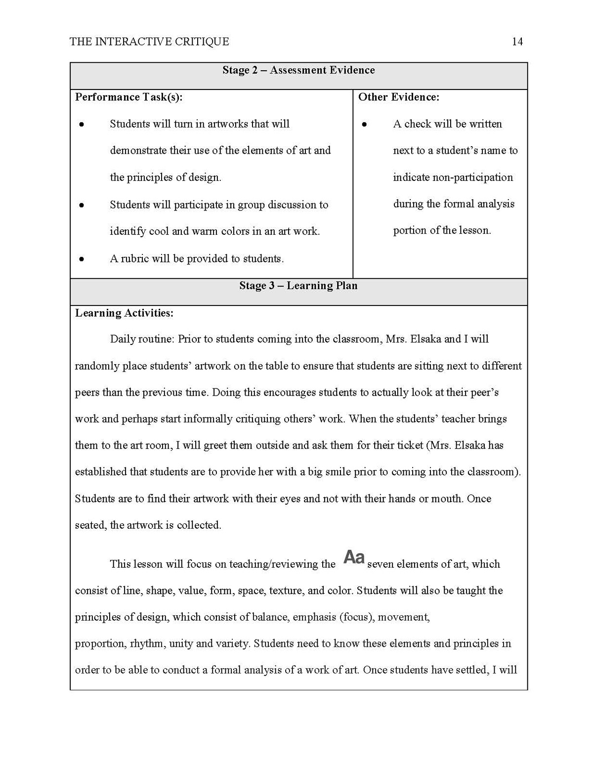 Unit Plan: Elementary